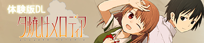 体験版ダウンロード 夕焼けメロディア -体験版- コミックマーケット86にて頒布させていただいた『夕焼けメロディア-体験版-』の完売記念に、 同製品の無料配布キャンペーンを行っております。 下記のバナーにてダウンロードできます。 追記:掲載期間を延長を決定いたしました。この機会に是非プレイしてみてください。 掲載期間:9月1日~12月31日 ※本企画はイベントにて配布した体験版とは仕様が異なります。こちらにはキャラクターボイスは入っておりません。